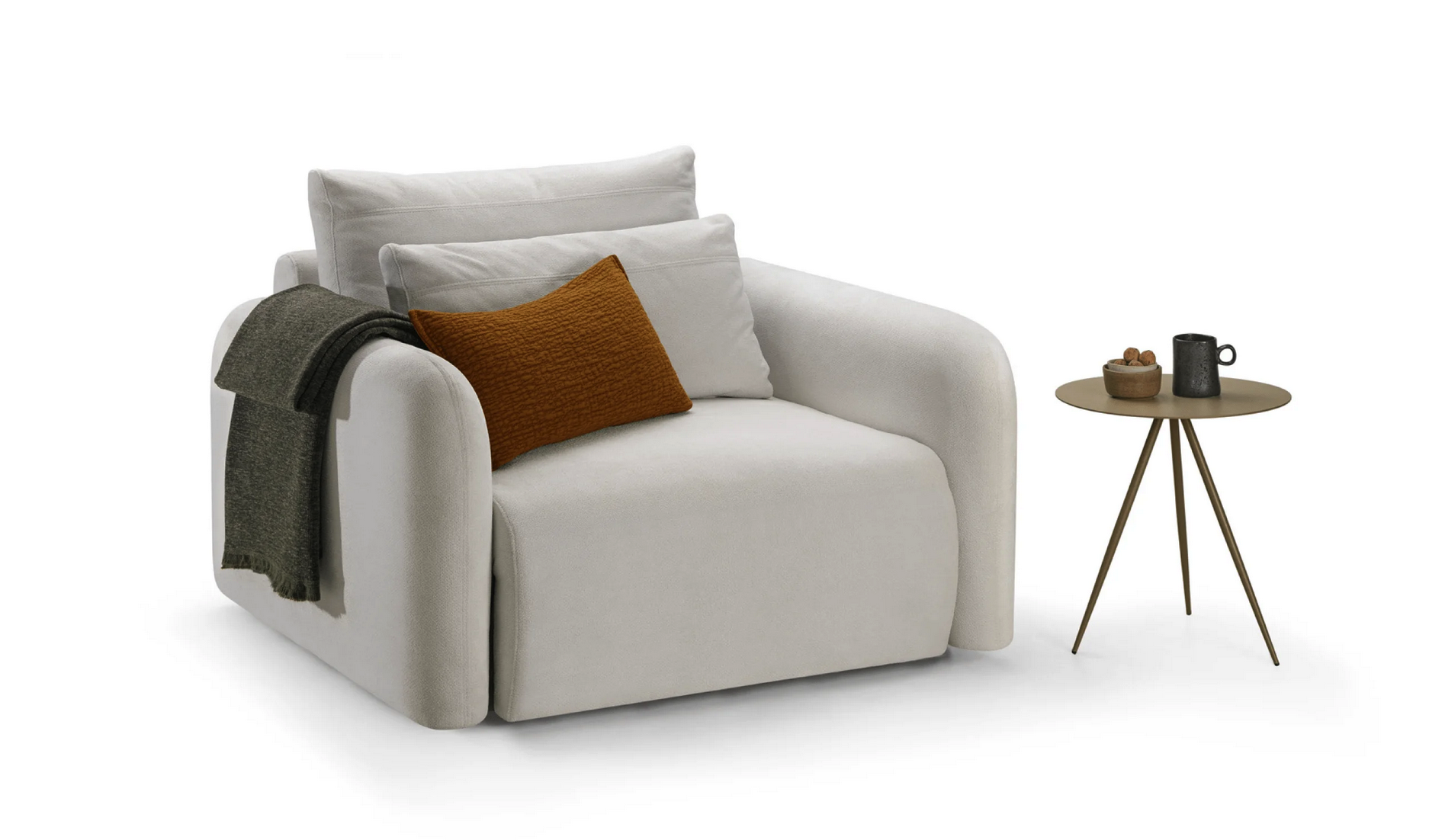 Πολυθρόνα – Κρεβάτι σε διαστάσεις 110×110×82Υ (ανοιγόμενο: 80×190) με αποσπώμενο ύφασμα. * Η αναγραφόμενη τιμή δεν αντιστοιχεί κατ’ ανάγκη στην σύνθεση της φωτογραφίας και μπορεί να διαφοροποιηθεί ανάλογα με την κατηγορία υφάσματος.