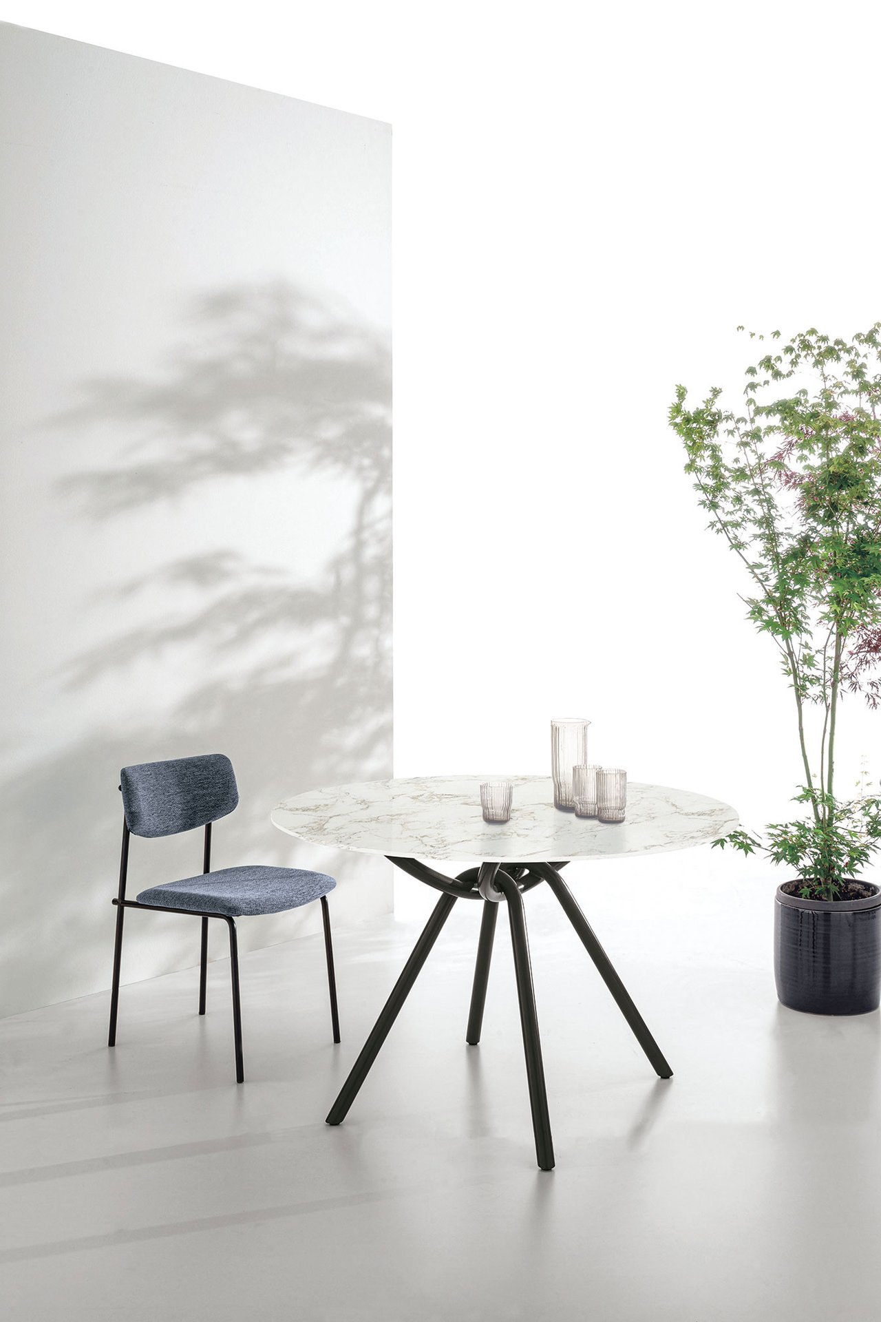 Τραπέζι SMILE του Ιταλικού οίκου Target point με μεταλλική βάση και επιφάνεια σε γυαλί με ειδικό εφέ ψηφιακής εκτύπωσης.